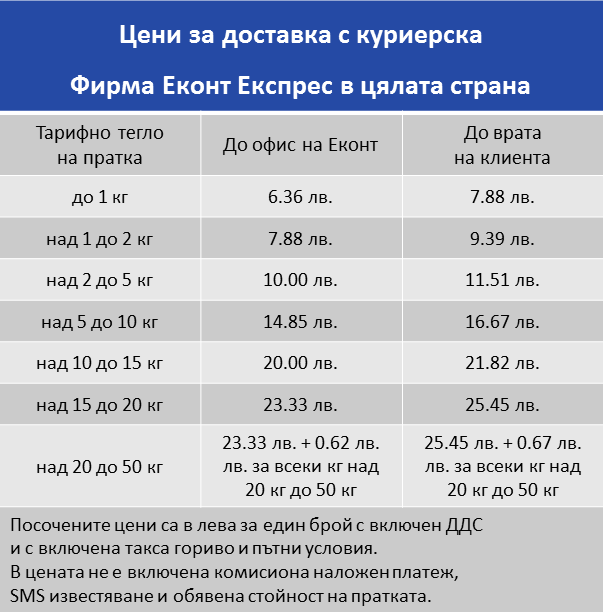 Usloviya I Ceni Za Dostavka
